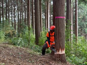 模擬伐倒 鈴木賢一さん (株)天城農林